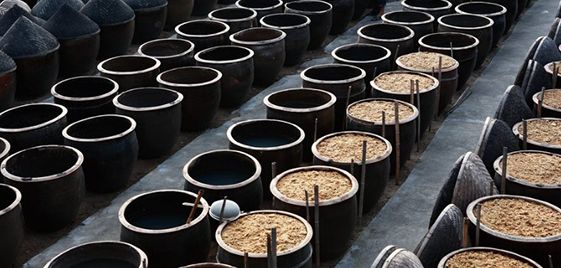 用大豆制曲过程中,全凭人工搅拌、检查。乌黑的酱醪在缸里发酵到何种程度,全凭一双手、一个鼻子的试验。没有数十年的经验,都没法轻易决断。